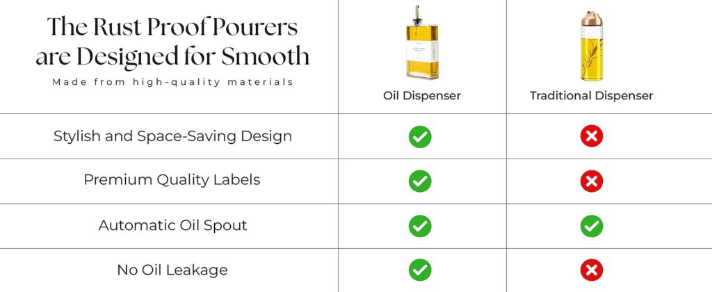 Durable, Built to Last – Crafted from thick, BPA-free premium glass, this olive oil dispenser bottle is sturdy, safe, and designed to stand up to everyday cooking as your go-to cooking oil dispenser.