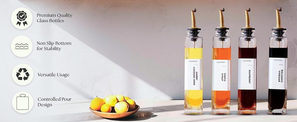 Effortless Pouring, Everyday – Designed for smooth, mess-free use, the Culmino olive oil dispenser bottle makes cooking easier and cleaner. Ideal as an oil dispenser or a complete oil and vinegar dispenser set.