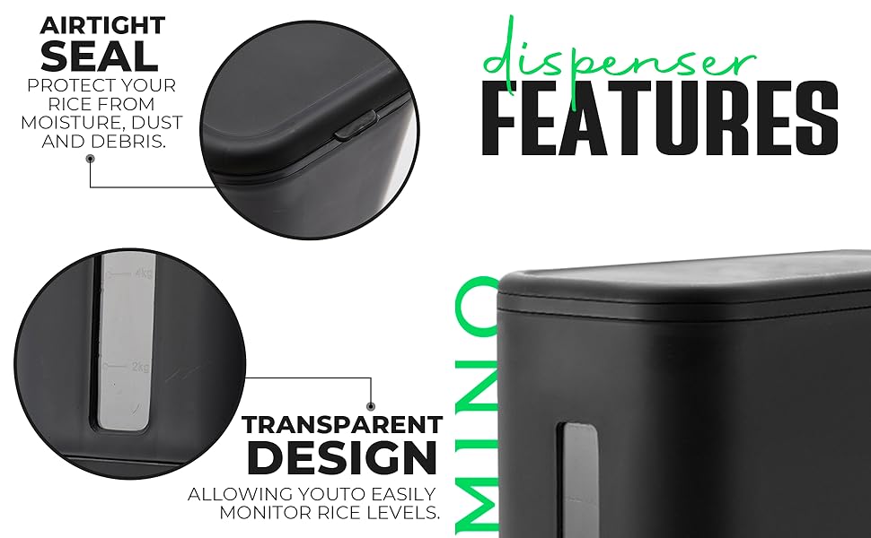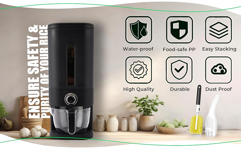 Freshness Preservation : Our rice container 25 lbs airtight black rice dispenser is designed to keep your rice fresh and free from contaminants. This cereal containers storage dispenser comes with airtight seal preserves the quality, freshness and flavor of your rice, ensuring you always have the best ingredients on hand dispensador de arroz 25 libras. Perfect dispensador de arroz to use for home kitchens.