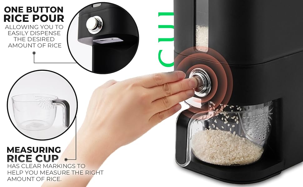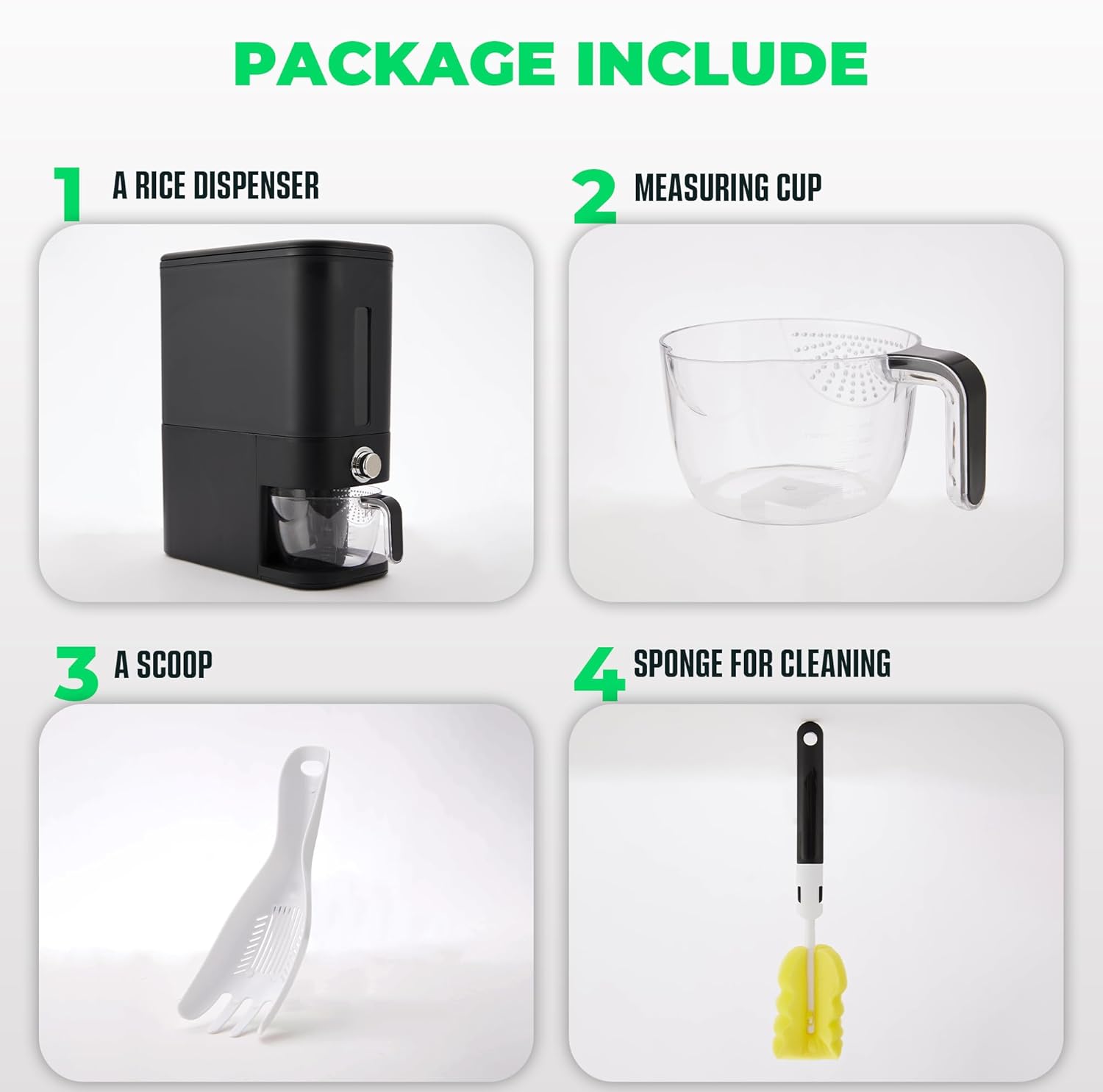 Convenient Measuring Cup : The rice measuring cup is included with the rice storage container food dispenser, allowing you to easily measure out the perfect amount of rice for any recipe. Say goodbye to guesswork and get this rice holder dispenser to ensure accurate portions every time with this handy accessory rice storage container 20 lbs.